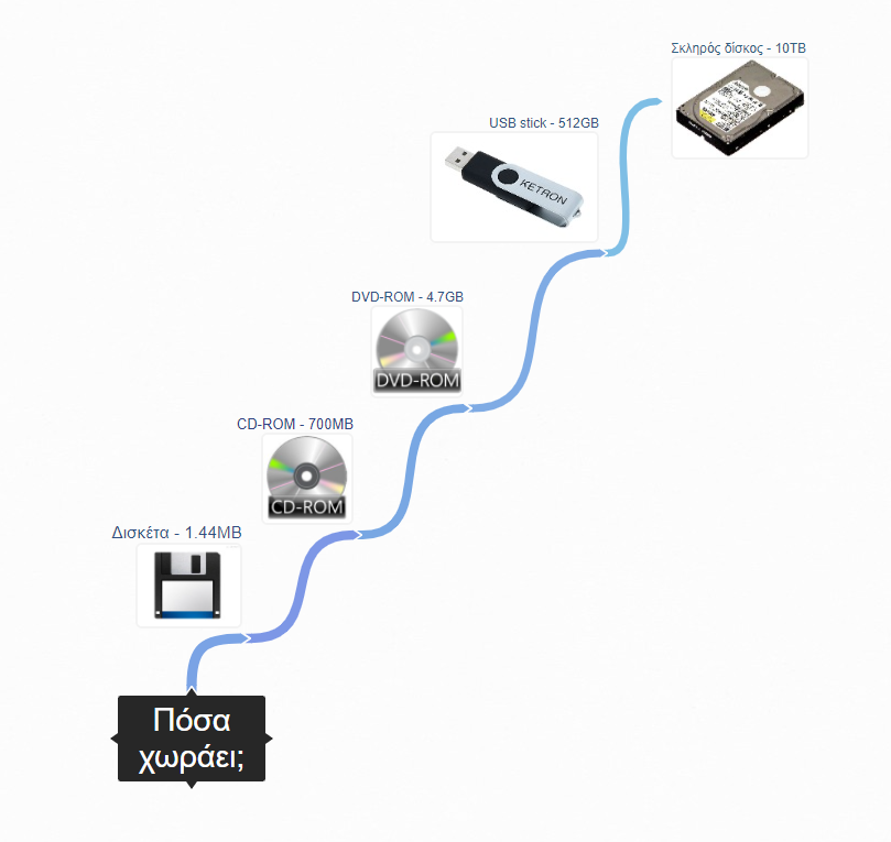 Στα αποθηκευτικά μέσα αποθηκεύουμε αρχεία (files) και χρησιμοποιούμε φακέλους (folders) για την οργάνωση/ταξινόμηση των αρχείων μας, ώστε να τα βρίσκουμε πιο εύκολα.