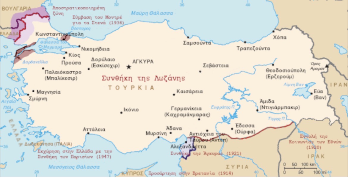 Χάρτης με τα εδάφη που διεκδικούσε η Ελλάδα το 1919 ως μέρη της Μεγάλης Ιδέας