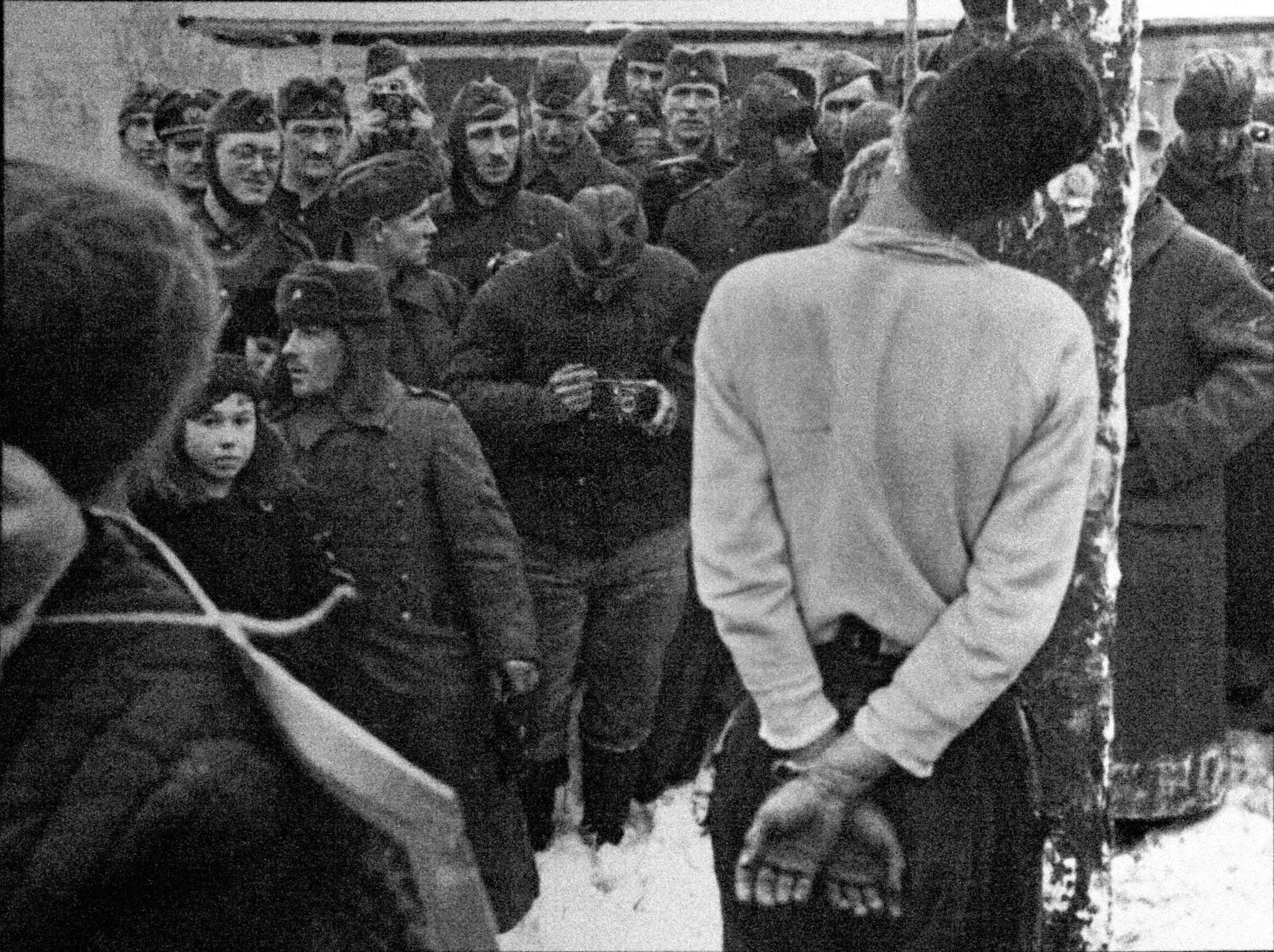 α) Ένα αγόρι να περπατά ανάμεσα σε πτώματα, αμέσως μετά την απελευθέρωσή του (1945):