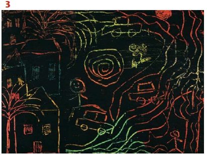 ΤΕΛΟΣ ΣΤΗΝ ΤΡΙΤΗ ΕΙΚΟΝΑ ΒΛΕΠΟΥΜΕ ΤΗ ΖΩΓΡΑΦΙΑ ΕΝΟΣ ΠΑΙΔΙΟΥ ΟΠΟΥ ΖΩΓΡΑΦΙΖΕΙ ΜΙΑ ΠΟΛΗ ΣΤΟ ΣΚΟΤΑΔΙ ΜΕ ΦΩΤΕΙΝΕΣ "ΤΡΟΧΙΟΓΡΑΜΜΕΣ".