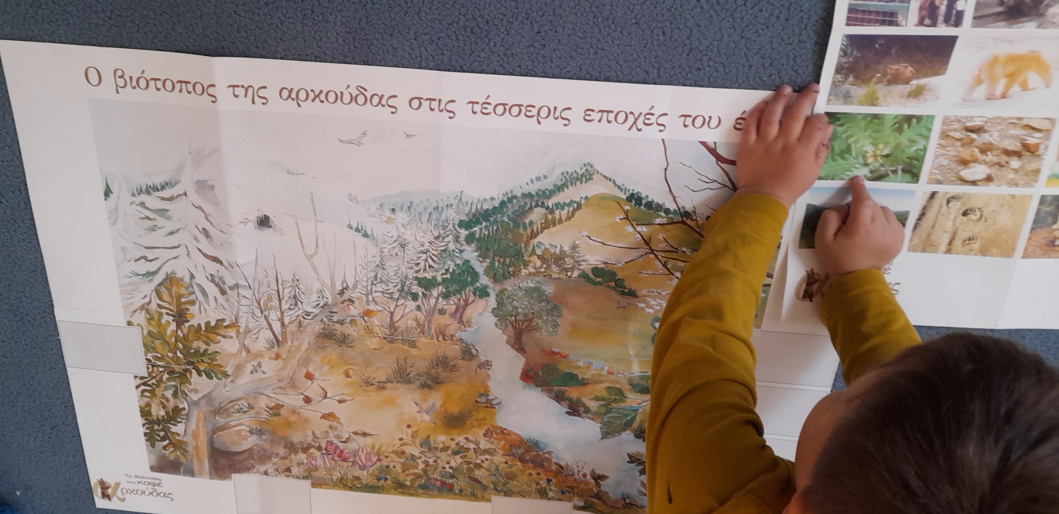 Το εκπαιδευτικό διαθεματικό σενάριο έχει σαν θέμα την διατροφή της καφέ αρκούδας, η οποία επηρεάζεται από την εποχή του χρόνου και τις διατροφικές της ανάγκες.
