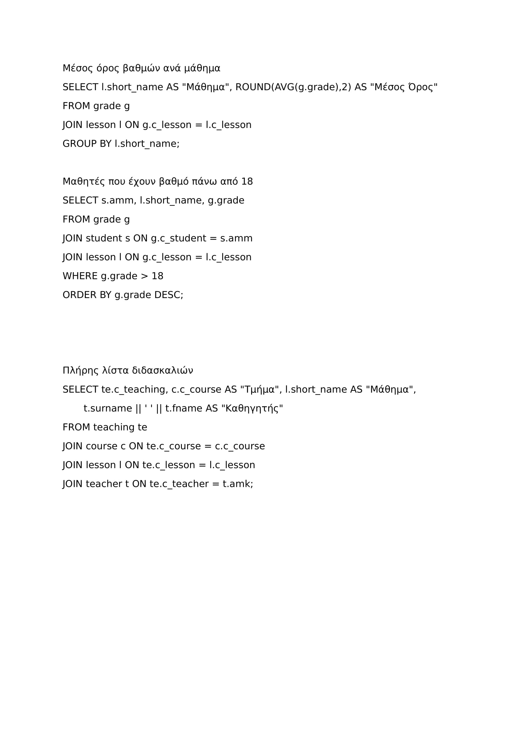 Μάθημα : Γ-ΠΛ - Συστήματα Διαχείρισης Βάσεων Δεδομένων και Εφαρμογές τους στο Διαδίκτυο - Εργ