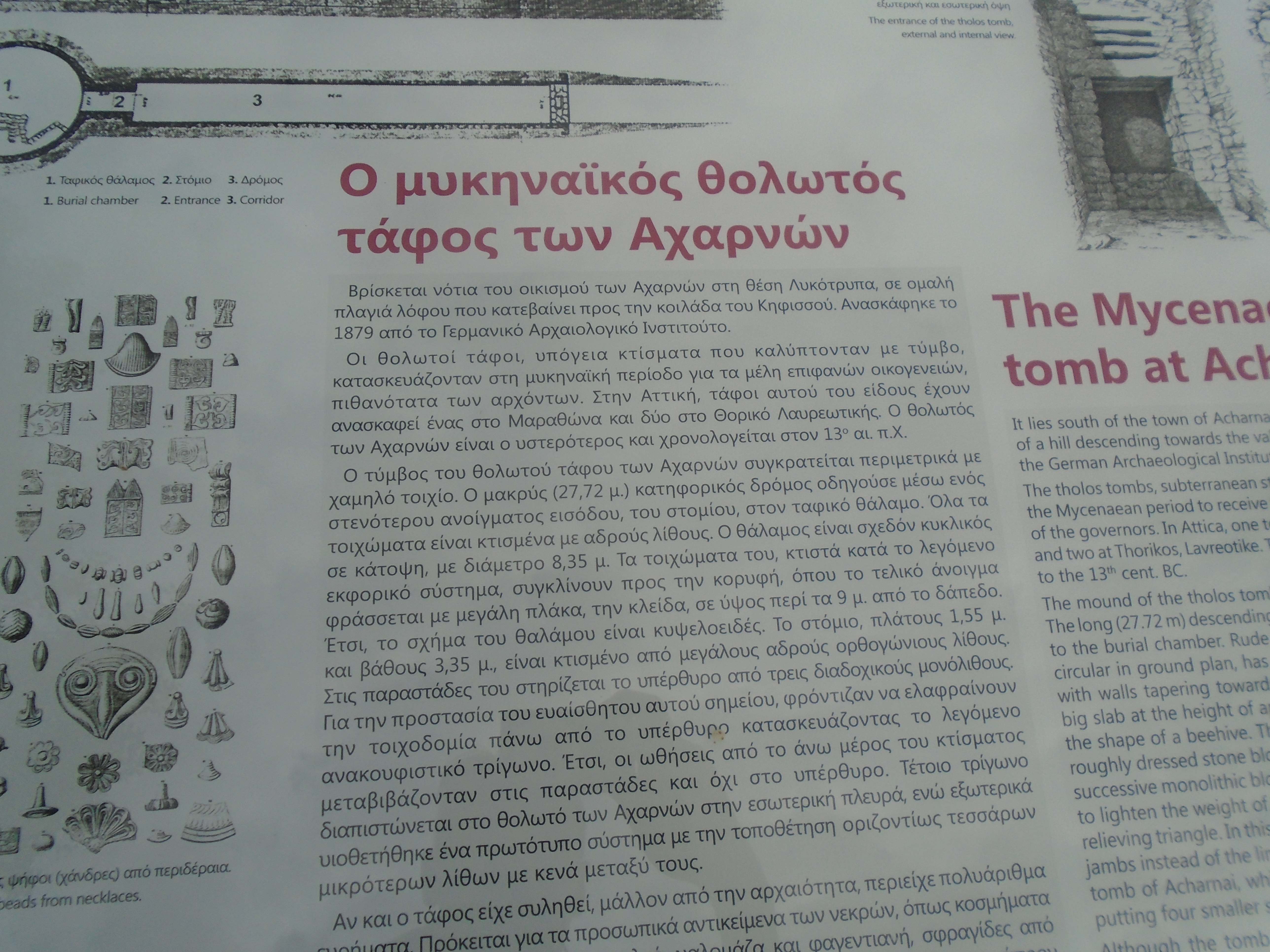 Σε θολωτούς θάπτονται άνακτες . Η ύπαρξη του υποδηλώνει μυκηναϊκό κάστρο σε κοντινή απόσταση .
