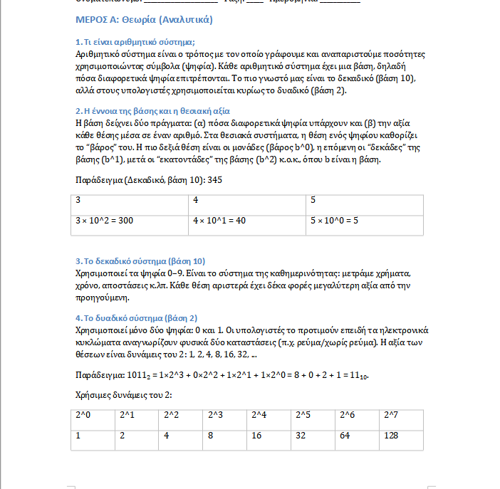 Μάθημα : ΠΛΗΡΟΦΟΡΙΚΗ - Α΄ ΤΑΞΗΣ