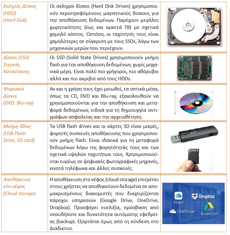 β) τα αποθηκευτικά μέσα*, όπως Σκληροί δίσκοι, DVD-ROM, usb flash sticks