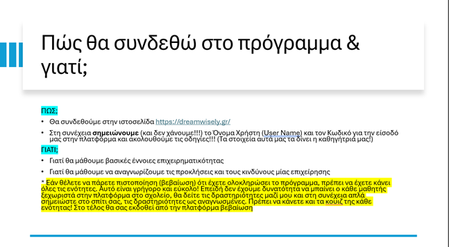 Μάθημα : NEANIKH ΕΠΙΧΕΙΡΗΜΑΤΙΚΟΤΗΤΑ