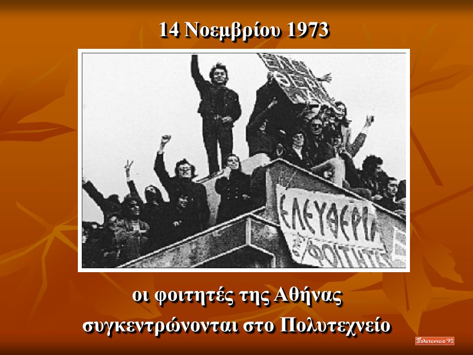 Ακολουθούν φωτογραφίες, βίντεο, τραγούδια, ποιήματα και σύνδεσμοι με πληροφορίες, από την Δικτατορία έως και μετά το Πολυτεχνείο με την αποκατάσταση της Δημοκρατίας