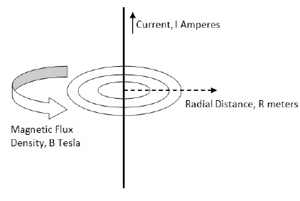 Το πεδίο σε απόσταση R από ευθύγραμμο αγωγό που διαρρέεται από ρεύμα Ι: