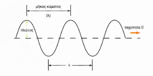 Μήκος κύματος λ είναι η απόσταση μεταξύ δύο διαδοχικών (γειτονικών) κορυφών ενός κύματος, ή μεταξύ δύο διαδοχικών (γειτονικών) κοιλιών.