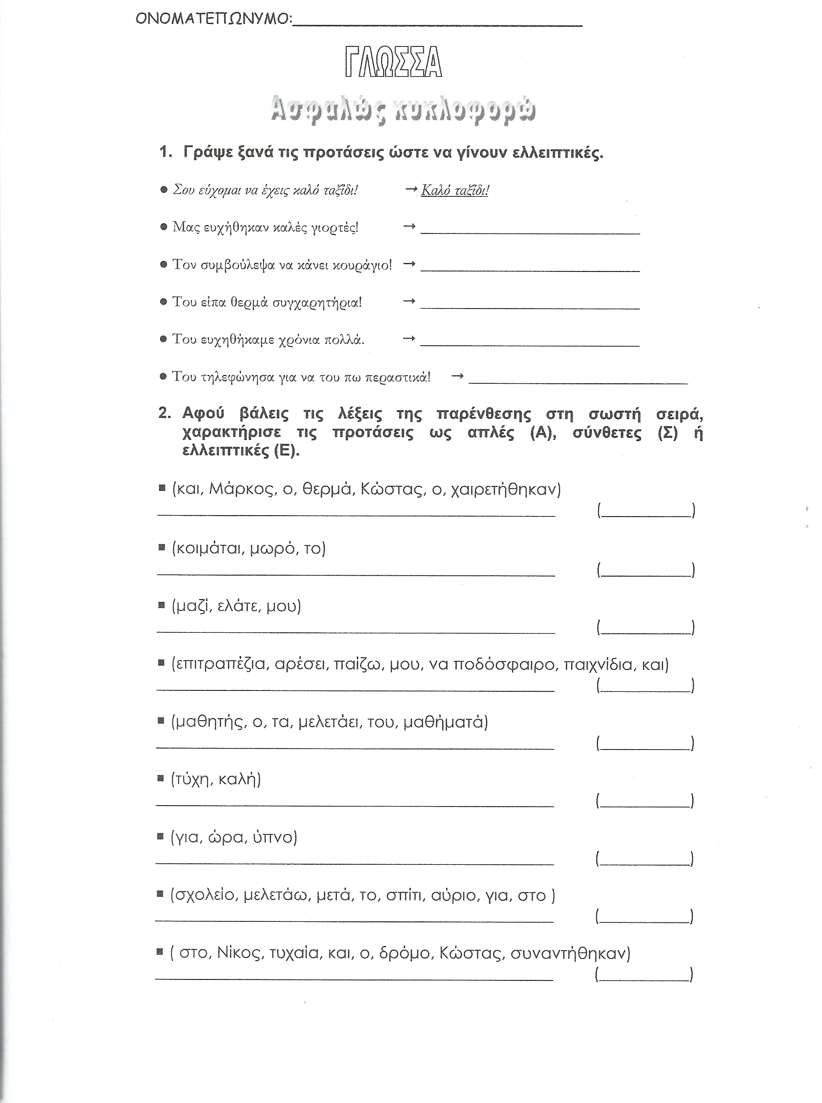 Μάθημα : ΓΛΩΣΣΑ Γ ΤΑΞΗ(δοκιμαστικο)