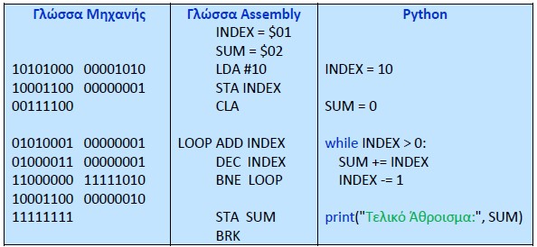 Πχ. Πρόγραμμα το οποίο προσθέτει όλους τους ακέραιους αριθμούς από 1 έως και 10.