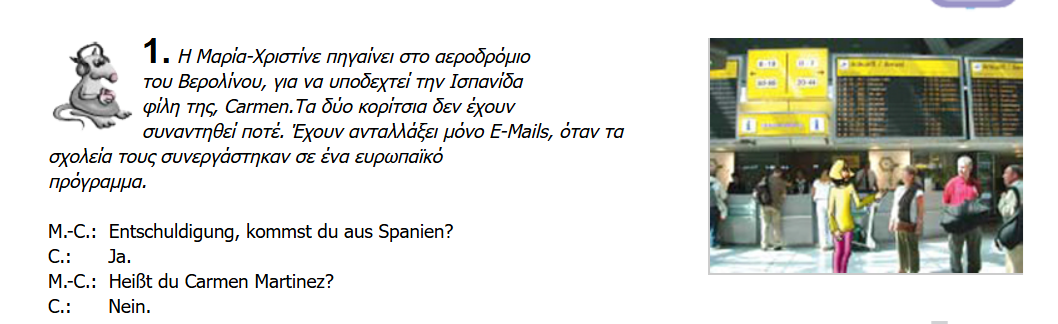 Διαβάστε πολύ καλά το κείμενο (δίνοντας σημασία στη σωστή ανάγνωση!) και προσπαθήστε να καταλάβετε το νόημα του κειμένου. Νομίζω ότι δεν θα έχετε πρόβλημα σε αυτό! Εάν ναι, θυμηθείτε ότι σας έχω αναρτήσει προηγουμένως όλο το λεξιλόγιο του κεφαλαίου ανά σελίδα!!!!
