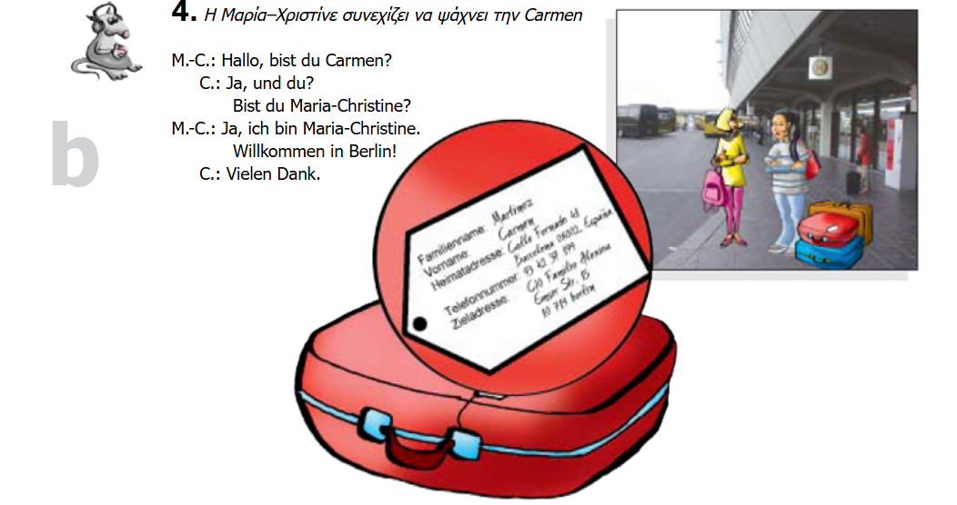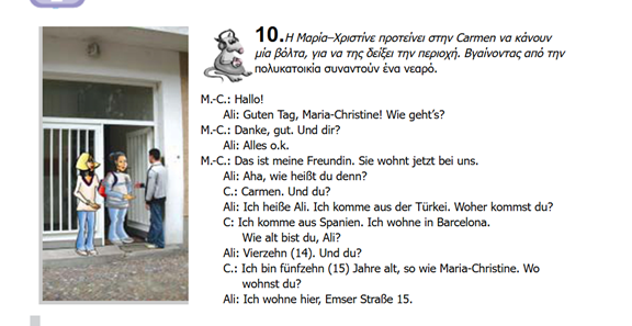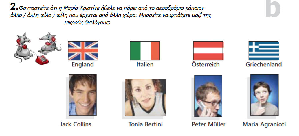 Η Maria - Christine ρωτάει όμως και άλλους περαστικούς. Φτιάξτε με το διπλανό σας παρόμοιους διαλόγους, χρησιμοποιώντας τα παραπάνω πρόσωπα.