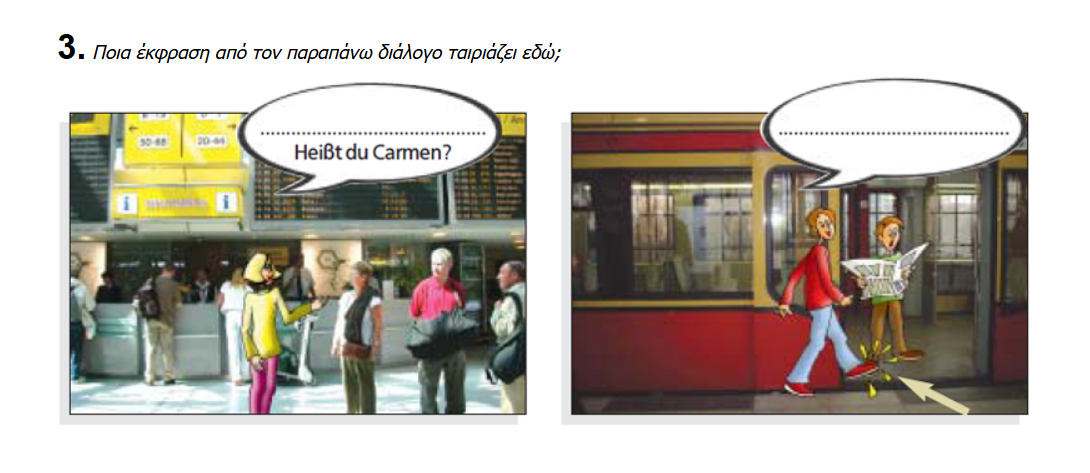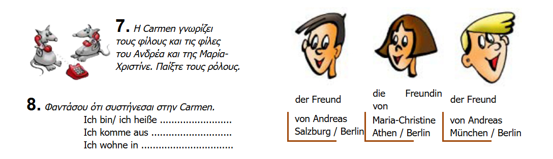 Εδώ βλέπουμε τον Stefan, την Eleni και τον Oliver! Χωριστείτε σε ζευγάρια και παίξτε τους διαλόγους με τη βοήθεια των εικόνων!! Στη συνέχεια συστηθείτε και εσείς!