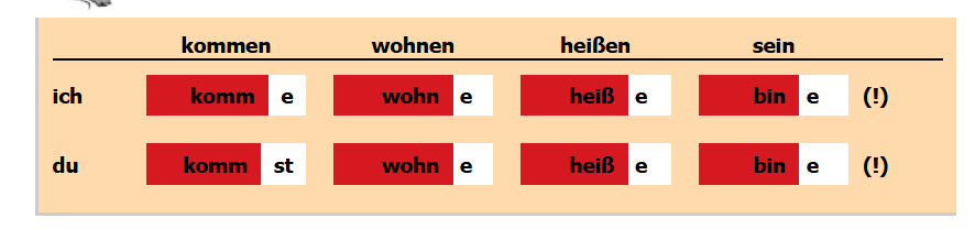 Ας μάθουμε να κλίνουμε τα ρήματα kommen (έρχομαι), wohnen (μένω), heißen (ονομάζομαι) και sein (είμαι) και στα υπόλοιπα πρόσωπα.