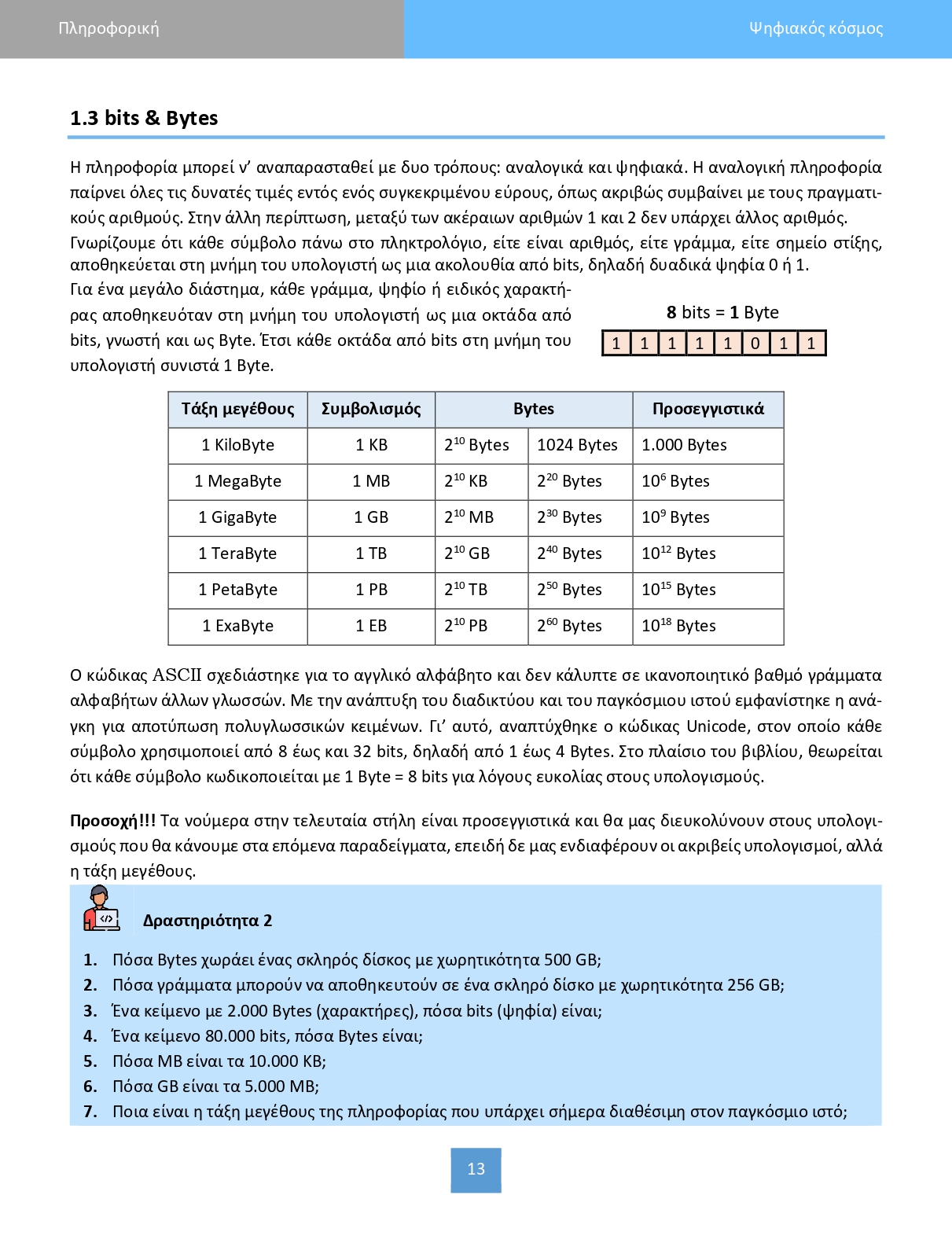 Μάθημα : Β' ΓΥΜΝΑΣΙΟΥ ΠΛΗΡΟΦΟΡΙΚΗ