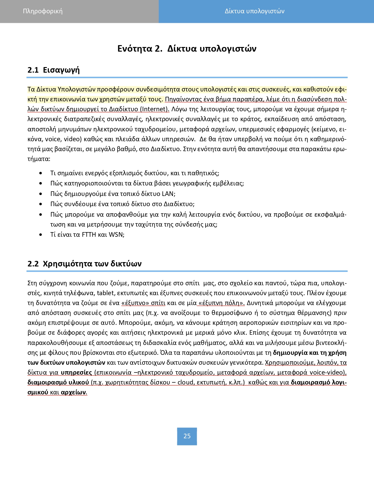 | ΕΝΟΤΗΤΑ 2 - ΔΙΚΤΥΑ | ||