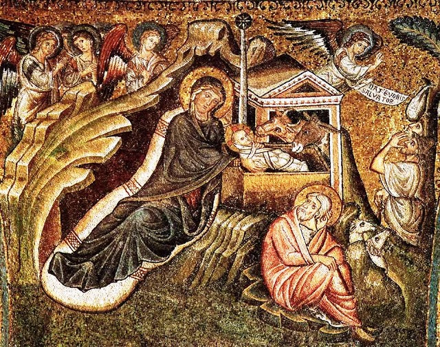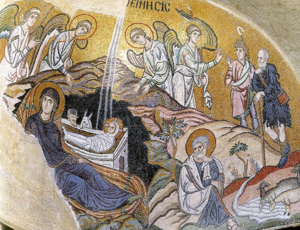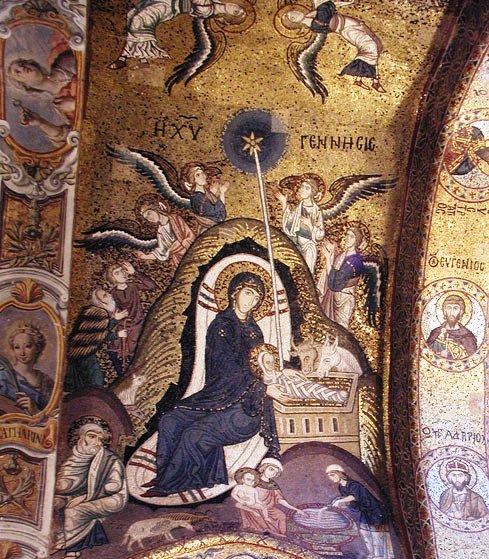 | Γέννηση Χριστού, ψηφιδωτό S. Maria dell Ammiraglio -Martorana di Palermo Sicilia (1143-1151) |