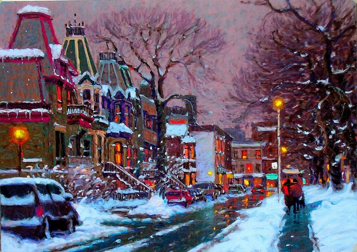 | Χιονισμένη νύχτα στην πόλη! (φωτογραφία) |