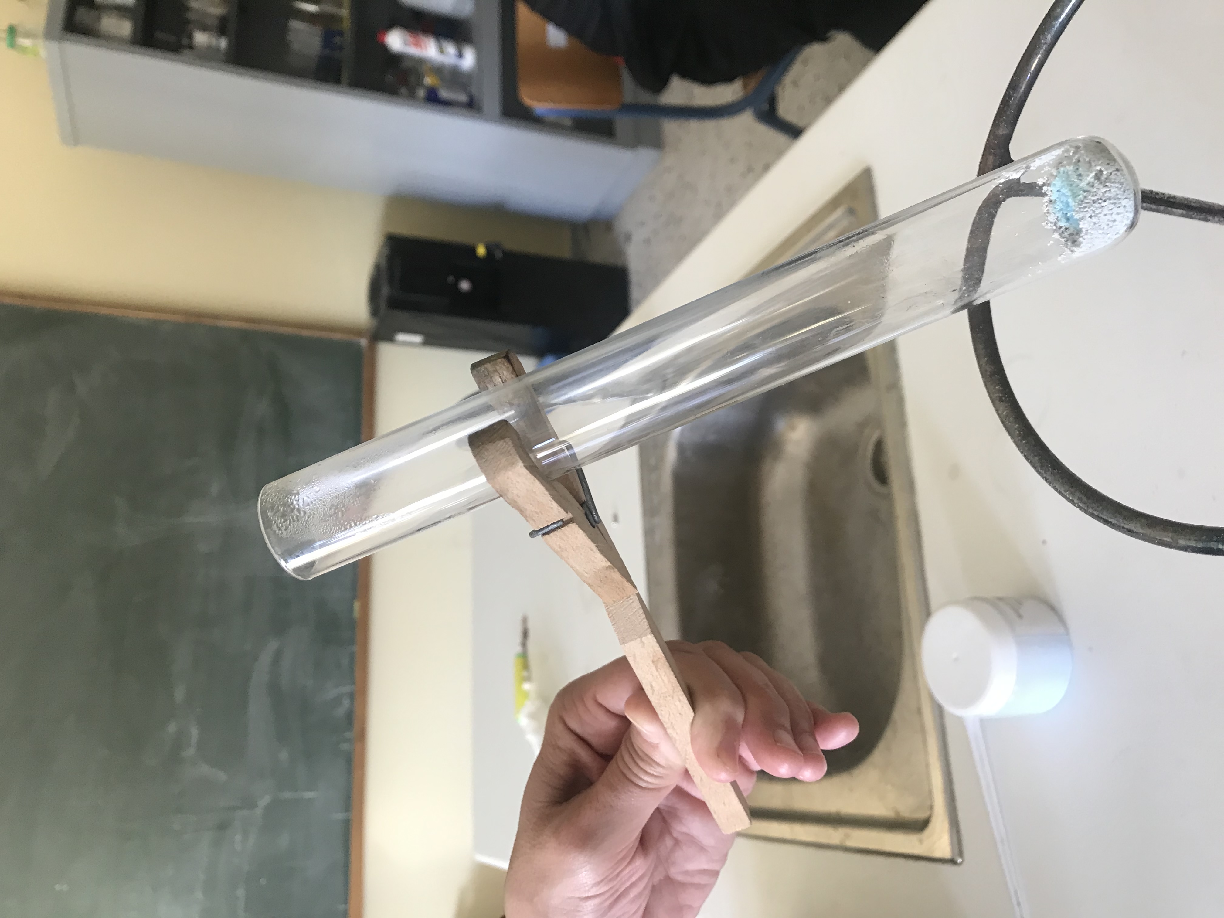 | Ένυδρος—->Άνυδρος θειικός χαλκός Παρατηρούμε τη γαλαζόπετρα να αποχρωματίζεται καθώς ο ένυδρος θειικός χαλκός μετατρέπεται σε άνυδρο. Δημιουργός: ΜΑΡΙΑ ΧΡΙΣΤΟΠΟΥΛΟΥ |