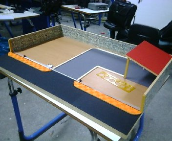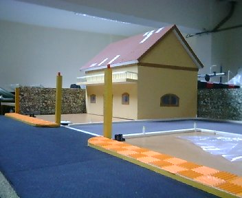 | 01. Αρχικό στήσιμο μακέτας Εδώ φαίνεται το αρχικό στήσιμο της μακέτας. Ο οδηγός της γκαραζόπορτας έχει τοποθετηθεί μαζί με τους τερματικούς διακόπτες. Ο τοίχος έχει κολληθεί, αλλά το σπίτι απλά έχει τοποθετηθεί για τον υπολογισμό των χώρων. Δημιουργός: Μαθητές του 1ου ΤΕΕ Χαλανδρίου, Σχολική χρονιά 2005-2006 |