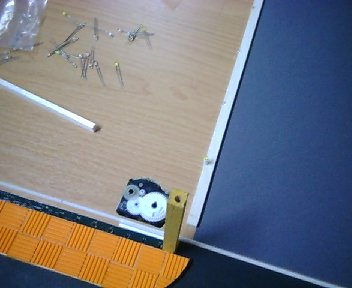 | 04. Ο μηχανισμός οδήγησης της πόρτας Εδώ φαίνεται καθαρό η τοποθέτηση του μηχανισμού οδήγησης της κινούμενης πόρτας. Ο μηχανισμός έχει παρθεί από ένα παλιό DVD Drive υπολογιστή. Από την κάτω μεριά έχει τοποθετηθεί με τέτοιο τρόπο που να μπορέσει να ρυθμιστεί το ύψος του και η ακριβής πίεση των γραναζιών ώστε στο τέλος να λειτουργεί κανονικά η πόρτα Δημιουργός: Μαθητές του 1ου ΤΕΕ Χαλανδρίου, Σχολική χρονιά 2005-2006 |