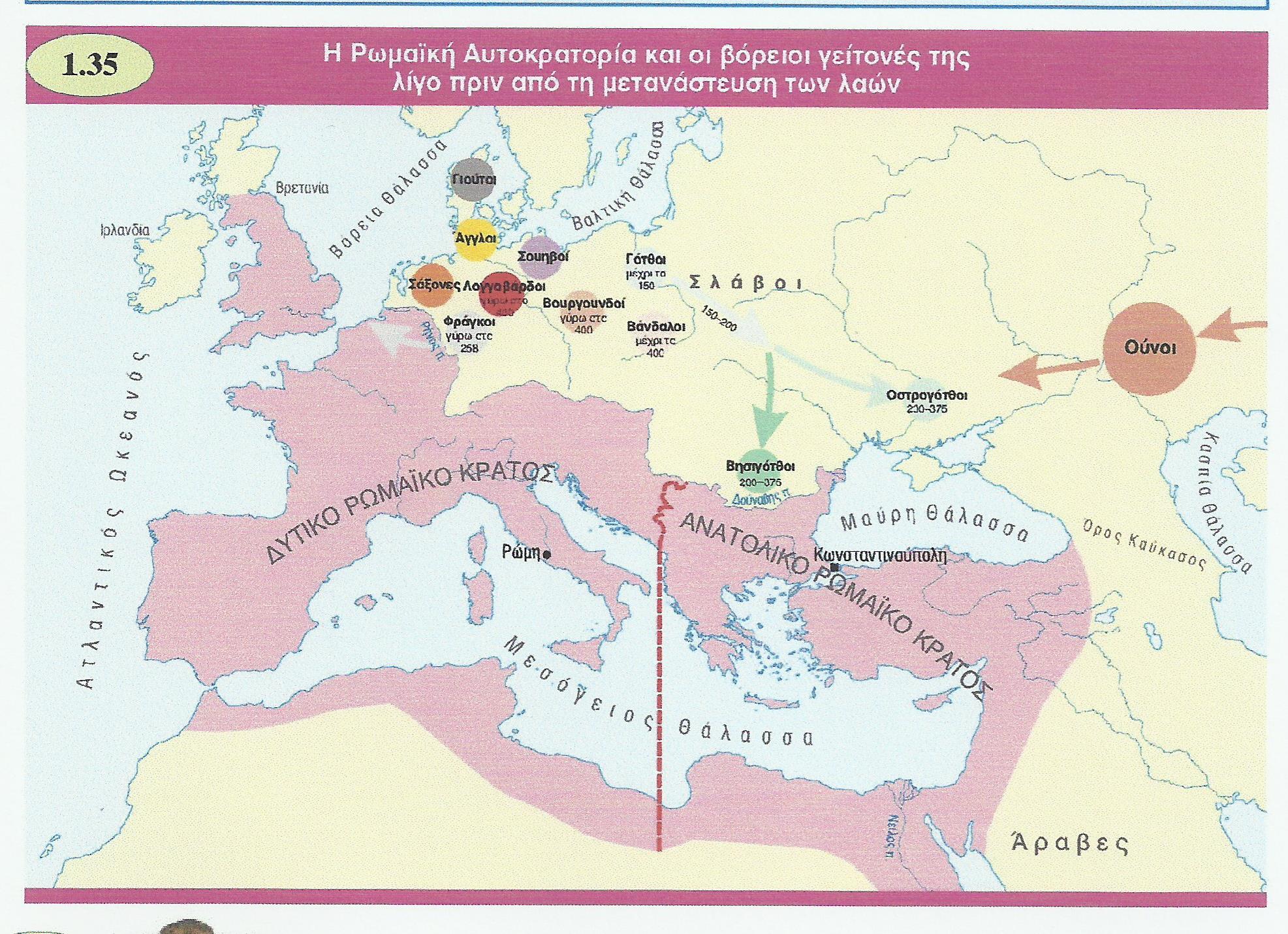 | Χάρτης Ρωμαϊκής Αυτοκρατορίας μετά τη μετανάστευση των λαών Δημιουργός: ΑΦΡΟΔΙΤΗ ΣΠΗΛΙΑΔΟΥ |