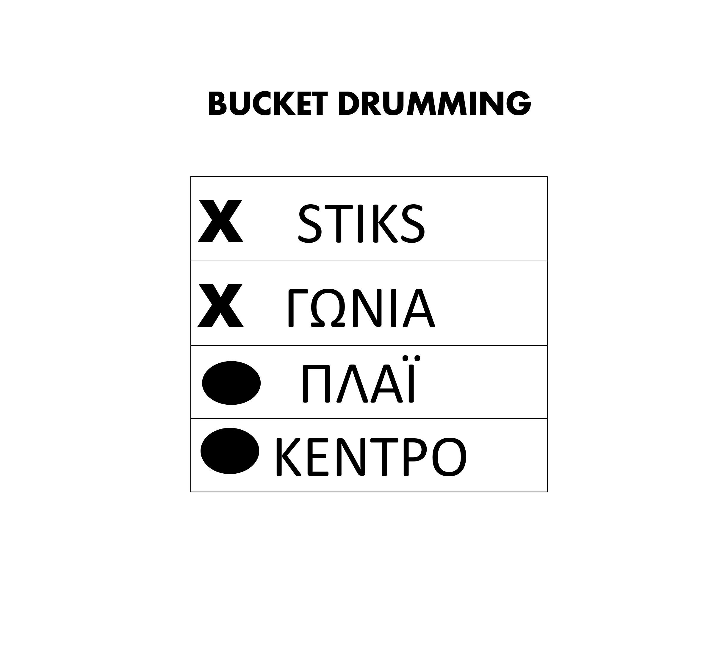 | ΒUCKET DRUMMING ΘΕΣΕΙΣ Δημιουργός: ΤΗΛΕΜΑΧΗ ΜΠΡΑΤΣΙΑΚΟΥ |
