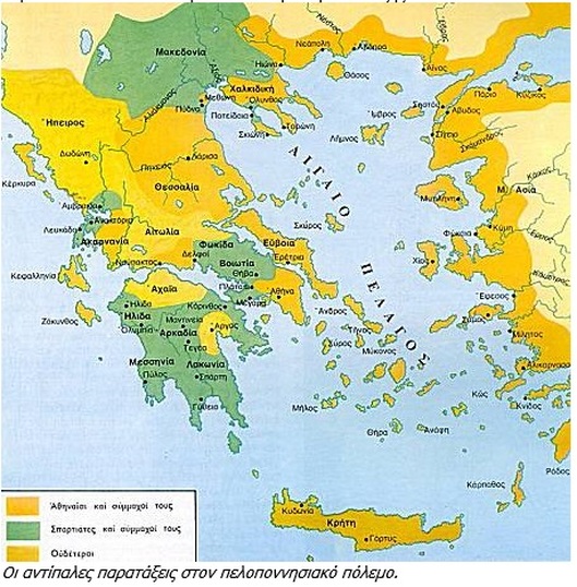 | Οι αντίπαλες παρατάξεις στον Πελοποννησιακό Πόλεμο. Δημιουργός: ΑΦΡΟΔΙΤΗ ΣΠΗΛΙΑΔΟΥ |