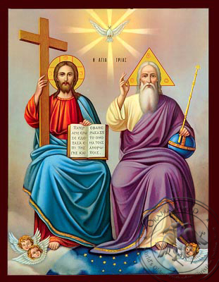 | ΑΓΙΑ ΤΡΙΑΣ - 1 Η αποτύπωση της Αγίας Τριάς σε αναγεννησιακή τέχνη. Δογματικά η απεικόνιση των τριών προσώπων της Αγίας Τριάδος στην συγκεκριμένη παράσταση δεν ευσταθεί. Δημιουργός: ΑΝΤΩΝΙΟΣ ΣΚΛΑΒΟΥΝΟΣ |